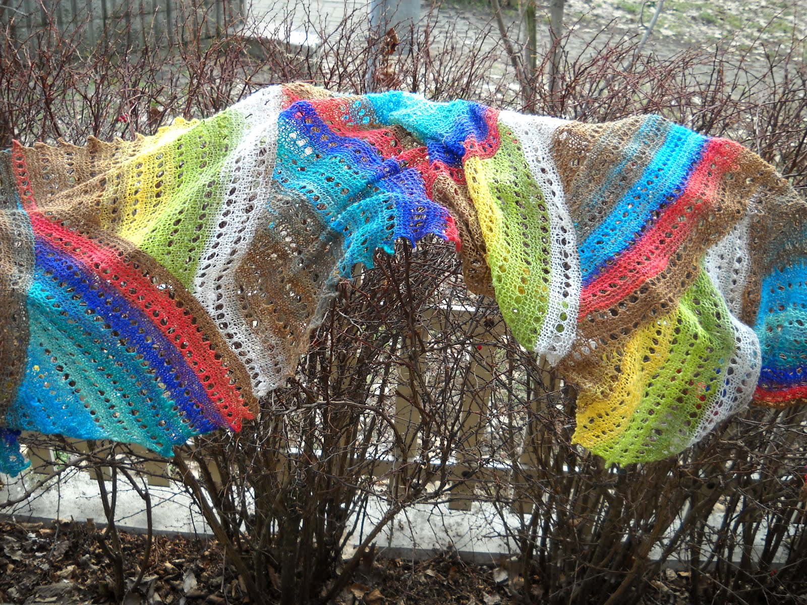 I have a love hate thing about this Japanese yarn, once started the colour changes and the thick thin texture is hypnotic. Totally relaxing. But I'm not always over keen on results. I dont really like blends only pure wool and sometimes the colour combinations seem to clash. The skirt is an example. Always wanted to knit a skirt. It came out as promised but I dont really feel its me. Already frogged it. Fortunately unpicking can be as therapeutic as creating at times and it is already being recycled into a jacket. The second project was much more promising